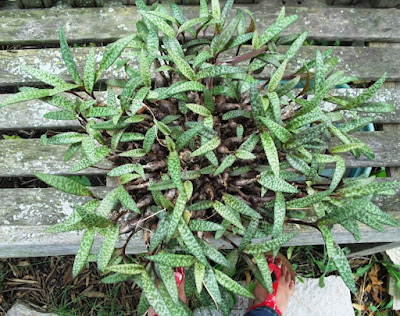 I'm not sure I want to move it up to a larger pot size. The next step is a bowl, like the ones I use for my dish gardens, and I'm not sure I have room for that. Dividing it would be the alternative, but I am a bit hesitant to do that, lest I damage it. And I really like it as one large plant. Decisions, decisions, decisions.